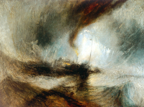 터너의 말기 작품은 바다와 하늘이 하나로 어우러지고 그 경계를 구분할 수 없는 폭풍의 역동성으로 넘쳐난다. 이런 터너의 작품을 보고 사람들은 인상파의 기원으로 평가하고 있으며 또 추상화의 시작으로도 평가한다.