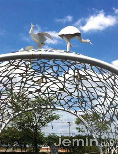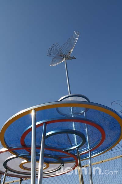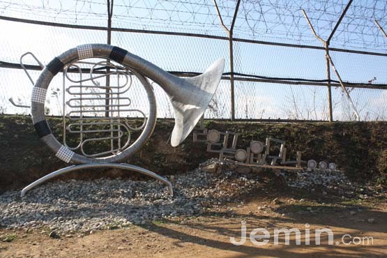 그리고 평화에 대한 바람은 보다 큰 고민이 요구됐다. 그래서 생각한 것이 '바람'이었다. 관악기의 이미지를 차용한 '평화의 노래'나 통일을 향한 간절함을 담은 홀씨를 품은 '평화의 바람', 그리고 당장이라도 북쪽을 향한 날갯짓을 시작하려는 금속 소재 새는 소리의 울림을 상징하는 스피커 형태 벤치 위를 지키고 있다.