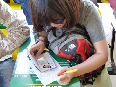 "라오스로 돌아오는 길에 태국에서 쌀국수를 먹었는데 낍(라오스통화)을 사용하다가 바트(태국통화)를 다시 사용하니 뭔가 어색했다. 다시 라오스로 돌아오니 '국경놀이'가 참 재미있었다는 생각이 들었다. 하지만 계속 하면 여권이 도장으로 꽉 채워지니까 이상해서 잡혀갈 지도 모를 것이다. ㅠㅠ. 오늘의 교훈 : 국경놀이도 적당히." (신수경·열네 살)
