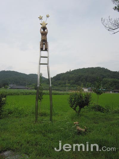 마을에 들어서며 일단 마음이 바빠졌다. 얼핏 듣기에 경북 영천시 화산면 가상리 일대는 한적한 농촌이다. 낯선 이들의 방문이 사뭇 신경 쓰일 일이지만 마을을 가로 질러 흐르는 기운은 예전 그대로만 같다. 인적 드문 이 외딴 마을에 얼마 전부터 사람들의 발길이 잇따르고 있다고 했다. 방문객들은 마을 이곳저곳을 돌아다니며 사진을 찍거나 산책한다. 논두렁과 빈집, 개천 등 이 일대에는 별을 따는 소년의 조형물과 수달 관측소 등 다양한 예술작품 45점이 설치돼 있다.