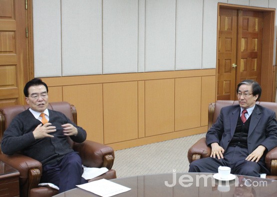 우근민 지사는 이날 오후 4시30분 도청 집무실에서 제민일보 진성범 대표이사 겸 사장·김철웅 편집국장의 예방을 받고 환담을 나누었다.
