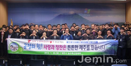 제민일보가 도민대통합의 발판을 마련하기 위해 추진하는 ‘WeLove(We♥)’프로젝트에 동참하는 결의대회가 이어지고 있는 가운데 제주시 농수축산경제국도 29일 프로젝트에 합류했다.