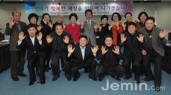 유니세프서귀포후원회(회장 이석창, ㈜자연제주 대표)는 12일 오후 시청 1청사 소회의실에서 칭찬과 배려하는 사회분위기를 조성하면서 어린이들에게 희망을 줄 수 있도록 'We♥'프로젝트 결의대회를 개최했다.