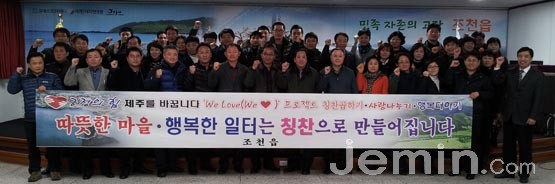 또 가정?직장?사회에 칭찬문화가 뿌리내릴 수 있도록 모든 노력을 기울이는 한편 칭찬하고 사랑하는 분위기를 조성, 꿈과 희망을 가꾸는 행복한 조천읍을 만들기를 약속했다.