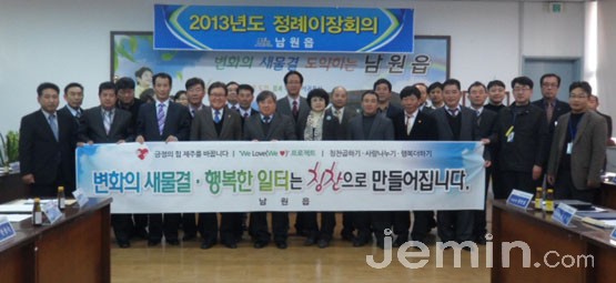 남원읍(읍장 강익주)과 남원읍이장협의회(회장 고금녀)는 1만8000여명의 읍주민을 대표해 15일 오후 읍사무소에서 We♥ 프로젝트 동참 결의대회를 개최, 지역주민과 행정간의 칭찬문화를 정착시키는 초석을 마련했다.