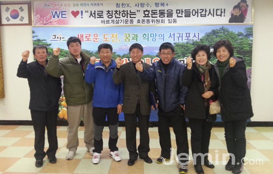 바르게살기운동 효돈동위원회(회장 오창섭) 회원 29명은 15일 칭찬하는 효돈동을 만들어가기 위해 'WE♥' 프로젝트 결의대회를 갖고 동참할 것을 선언했다.
