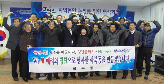 화북동(동장 김영호)은 지난 22일 동주민센터 회의실에서 지역 원로, 마을회장, 자생단체장 등 19명이 참석한 가운데 칭찬문화 확산을 위한 결의대회를 갖고 배려와 칭찬으로 주민 모두가 행복한 화북동을 만들어 가는데 앞장 설 것을 다짐했다.