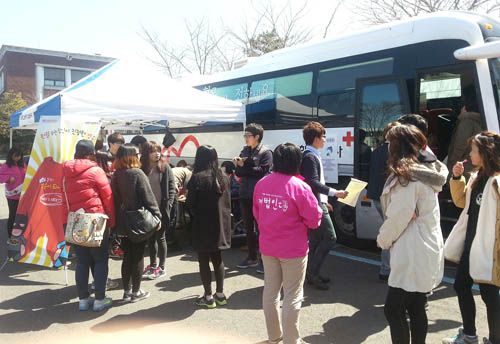 올들어 지난 14일 첫 헌혈행사가 진행된데 이어 21일까지 278명이 '1초의 찡그림'을 함께했다. 헌혈차 주변에 설치된 홍보부스는 다음 참여를 위한 스케줄을 확인하는 학생들로 늘 장사진을 이룬다.