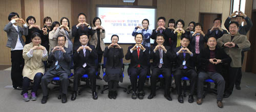 제민일보가 도민 대통합을 위해 연중 추진중인 칭찬 캠페인 'WeLove (We ♥)'가 도민 사회로 빠르게 확산되고 있다. 제민일보가 지난 1월16일 제주특별자치도·제주도의회·제주도교육청 등 도내 14개 후원·참여기관과 'We♥'프로젝트 MOU를 체결한 후, 17일 현재까지 칭찬 캠페인 참가자수는 1만7284명에 달하고 있다. 제주도 특별자치행정국이 1월17일 '칭찬하는 사회 분위기 조성을 위한 결의대회'를 개최해 첫 신호탄을 쏘아올린 'We♥'프로젝트에 도내 각계각층이 자발적으로 참여, 칭찬캠페인 가입자가 크게 늘어나고 있다. 제주도의회와 이장협의회, 주민자치위원회협의회, 제주도농업인단체협의회 등이 줄지어 칭찬캠페인에 동참했고 한라병원과 농협중앙회 제주지역본부, 제주은행, ㈜천마 등 의료·금융기관 및 기업까지 캠페인에 합류했다. 이어 YWCA 등 시민단체는 물론 중앙고와 동남초·동홍초·인화초 등 일선학교의 참여가 이어지고 있다.