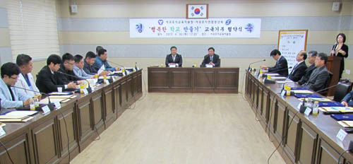 서귀포시연합청년회(회장 원경보)는 서귀포시 지역 17개 읍·면·동지구 청년회장들과 함께 지난달 30일 서귀포시교육지원청(교육장 김철호)과 '행복한 학교 만들기' 교육기부 협약을 체결했다.
