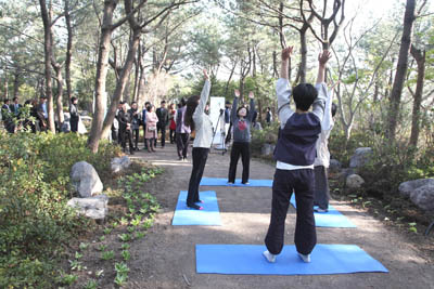 숲속 힐링프로그램은 각종 검사를 통해 자신의 몸 상태를 확인하고, 이에 맞는 운동 처방을 받은 후 전문 트레이너와 함께 산림을 걸으며 밸런스 스트레칭과 요가, 필라테스, 명상 등을 하는 것이다.