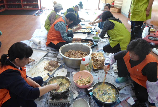 ▲ 지역 새마을부녀회원들이 전통음식을 만들고 있다.