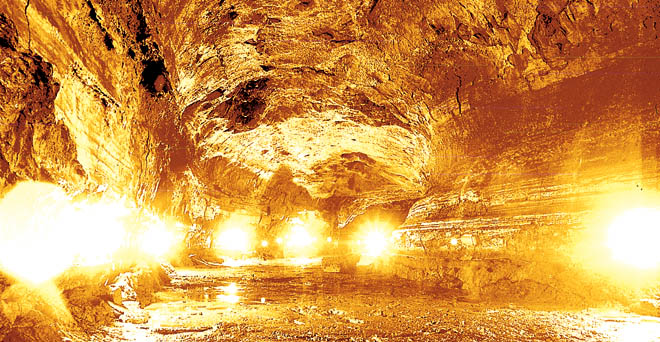 굴 입구에서 1.2㎞ 지점, 즉 낙반이 마치 돌 동산을 이루고 있는 곳에서 위를 보니 희미한 빛이 보이는데 현재의 제2입구 지점이다. 그런데 돌 동산을 막 올라서니 썩는 냄새가 진동, "아마 소나 말이 떨어져 죽은 것"이라 마음을 달래며 냄새가 나는 곳으로 가 보니 사람의 시체였다.