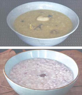 ▲ 전복죽(위)과 뭉게죽. 사진=전통향토음식 발췌