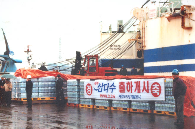 ▲ 지난 1998년 2월 국내시장 판매를 위해 제주삼다수가 처음으로 출하되는 모습.