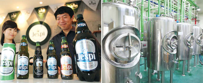 ▲ 개발공사가 24일 '제스피' 출시 행사를 시작으로 시장 공략에 나섰다. 제주맥주 '제스피' 제품들(왼쪽)과 생산시설.