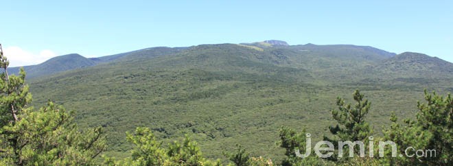 정상부 능선을 따라 8분을 전진하면 표고 1061.0m 최정상(〃F)이다. 출발한 지 1시간10분 정도 걸렸다. 이곳에선 우람한 남성의 근육을 연살시키는 어승생을 시작으로 쳇망오름·어스렁오름·왕오름·볼레오름이 '자신들의 주인' 한라산을 배경으로 의연하게 늘어서있다. 수천·수만년을 이어온 장엄한 대자연의 풍광 앞에 수십년의 삶에 아등바등하는 인간이 모습이 너무나 작게 여겨진다.