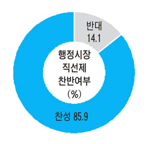 행정시장 직선제(시장직선·의회미구성)에 대한 찬반 조사 결과 85.9%가 찬성한다는 압도적인 지지가 나왔다.