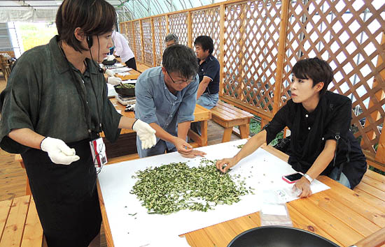 ▲ 마을기업에서 연근차를 제조하는 모습.