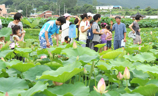 그렇다고 손을 놓기에는 그간의 노력이 아쉬워 마을은 계속해 주민회의를 갖고 변화를 시도하고 있다. 지난 7·8일 이틀간 진행한 제2회 가을꽃송이 축제에서 연 음식과 내동마을 경관의 사계절의 모습을 담은 사진 등을 전시하는 한편 이색 곤충과 동물을 전시 체험할 수 있는 전시장과 연근과 연잎수확체험, 연잎차 만들기, 연밥공예, 황화코스모스 꽃 꺾기, 미꾸라지 잡기 등 다양한 체험장을 운영했다. 지난 6월부터 마을주민들이 갈고 닦은 사물놀이 공연도 선보였다.