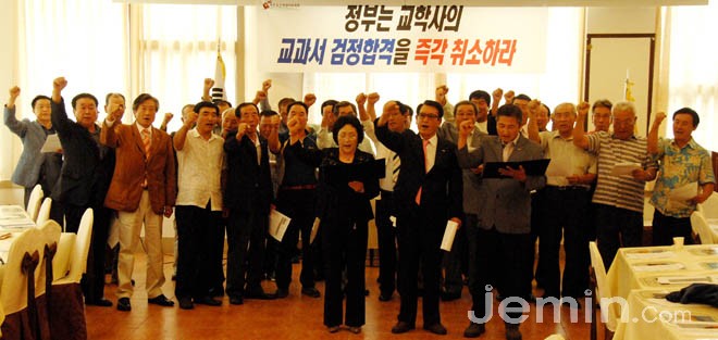 유족회는 "교학사 교과서는 진실을 애써 외면하고 이념논쟁의 과거로 회귀하는 내용을 담고 있다는 점에서 공분을 일으키고 있다"며 "4·3역사 뿐만아니라 현대사 정립에 많은 문제를 낳고 있는 교학사 교과서의 검정은 즉각 취소돼야 한다"고 주장했다.