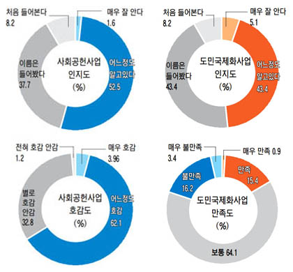 제민일보가 여론조사전문기관인 미래리서치(대표 양진철)에 의뢰, 8월9~17일 공무원·기업인·대학교수·연구원·정치인·마을이장 등 256명을 대상으로 사회공헌사업에 대해 물은 결과 91.8%가 인지하고 있는 것으로 나타났다.
