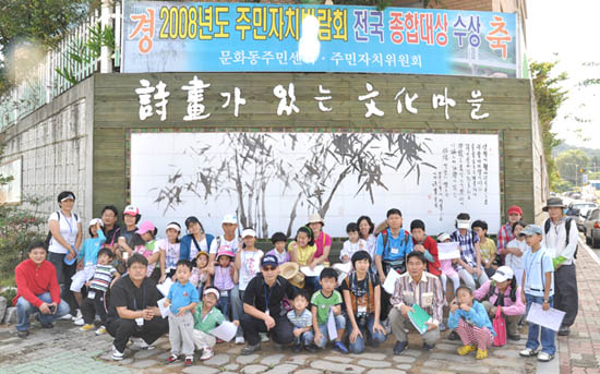 집 담장에는 주민들의 애송시를 담은 시화판이 설치되고, 시화 백일장 수상작은 학교 주변거리를 채웠다. 주민들이 직접 제작한 '문화문패'는 지역 문인화가들의 참여 작품들과 어우러졌다. 살고 싶은 도시만들기 마을분야 1위(2007년), 살고 싶은 도시만들기 시범도시(2008) 눈도장을 받고 난 이후에는 '생태 친화'로 살짝 방향을 틀었다.