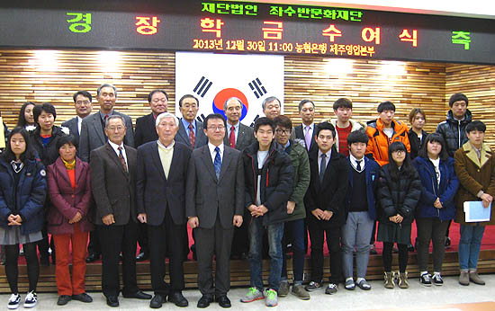 좌수반문화재단(이사장 좌세준)은 지난 30일 농협제주지역본부 4층 회의실에서 한라대 정보통신과 1학년 김태영 학생 등 30명에게 장학금 2625만원을 전달했다.