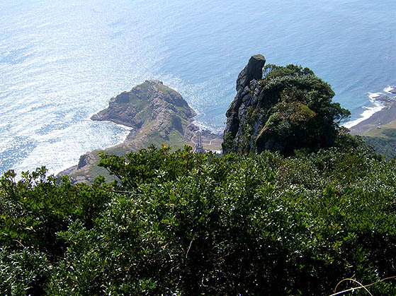 저 안덕멘에 강 보문 큰큰 오름 산방산이 신디, 그 앞의 바당더레 삐죽게 나온 동산 은 오름이 용머리우다. 오름을 세히 보문 둥이광 꼴랑지가 로 몽탁몽탁 끊어진 것처록 뒈여신디, 그걸 보멍 사름덜은 고종달이가 완 지맥을 그챠분 거엔 읍니다.