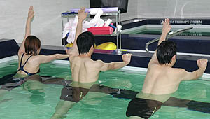 WE호텔에는 메디테이션 풀, 실내 및 실외 수영장 등 3곳에서 아쿠아로빅을 할 수 있다. 재활치료에 전문 지식을 가진 전문가들이 고객의 상태에 맞추어 프로그램을 구성하고 진행을 하기 때문에 운동후 느끼는 효과와 만족감이 아주 높다는 평가다.