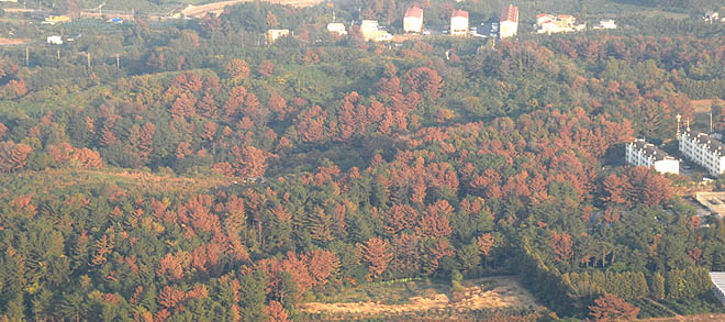 ▲ 지난해 소나무재선충병이 빠르게 확산되면서 도내 곳곳에 있던 해송림이 붉은색으로 변하며 말라죽었다. 사진=자료사진