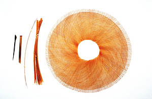 ① 무명실의 굵기와 날실의 굵기에 따라 '쌀 엮음'이 달라진다. 굵으면 날실용 죽사는 280여개, 가늘면 370여개가 된다.