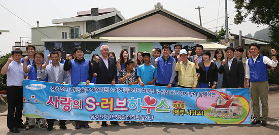 삼성전자 한국총괄 제주지점(지점장 김동언)은 지난달 29일 서귀포시 상효동에서 집수리 사업으로 추진한 'S-러브하우스' 준공식을 가졌다.