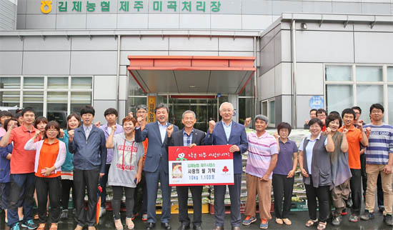 김제농협 쌀조합법인은 우선 지난해 5월 쌀 10㎏들이 100포(1100만원 상당)를 제주사회복지공동모금회에 지정기탁했다.