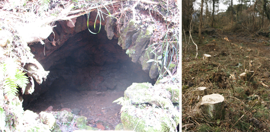 숯이 아니라 옹기를 굽던 가마터도 곶자왈지역에서 만날 수 있다. 만들어진지 100년 넘는 역사를 간직한 한경면 산양리 노랑굴은 폭이 2m 가까이 된데다 길이도 12m가 넘는 옹기가마로 옹기를 굽는 데는 많은 나무가 필요했다. 가마터는 곶자왈과 바로 맞닿아 있었으니 옹기를 구울 나무를 구하는 데는 최적지인 셈이다.