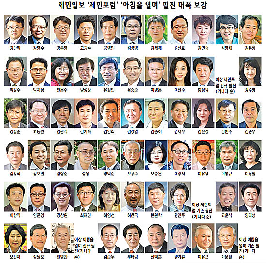 강수영(제주중장년일자리희망센터 소장), 강철준(제주국제대학교 금융기술학과 교수), 고동완(경기대 관광개발학과 교수), 김광식(21세기한국연구소장·정치평론가), 김기옥(생물종다양연구소 수석연구원), 김방희(생활경제연구소장·YTN 객원 해설위원), 김성열(경남대 교육학과 교수), 김송이(제주대학교병원 심장내과 교수), 김세우(노하우석세스시스템 대표), 김윤정(제주국제대 경영학과 교수), 김인주(봉성교회 목사), 김종우(감귤사랑동호회장), 김창식(제주국제대 교수), 김호민(영국왕립건축사), 김형준(제주대 건축학과 교수), 성웅(자비정사), 양덕순(제주대 기획처장), 오광수(이중섭미술관 명예관장), 오승은(제주대 행정학과 교수), 이광서(㈜아이부키 대표), 이봉규(제주대 전산통계학과 교수), 이용길(농협대학교 경영학과 겸임교수), 이유영(조세정의네트워크동북아챕터 대표), 이정필(지역아동센터 제주지원단장), 이창익(제주대 일어일문학과 교수), 임준영(네센엔터테인먼트 대표·경영학 박사), 정창원(제주대 사학과 교수), 최재권(제주관광대 인테리어건축과 교수), 허영선(시인), 허찬국(충남대 무역학과 교수), 현원학(제주생태교육연구소장), 황인주(제주에코푸드 대표). (이상 가나다순)