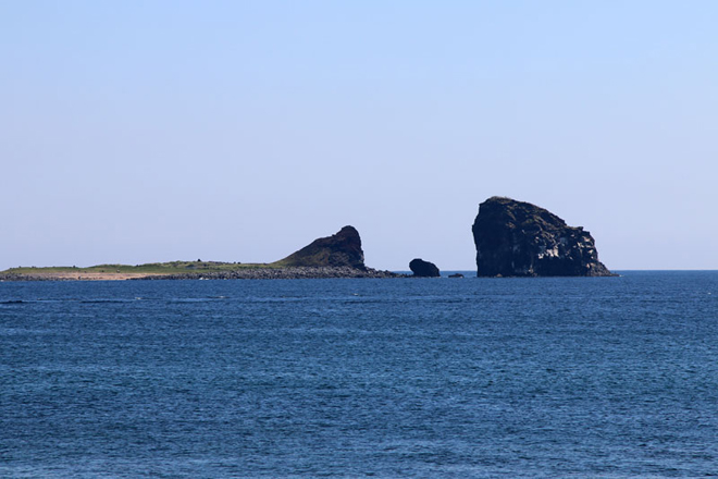 안덕멘 계리 산방산 앞 바당에 꼬만 바우섬 두 개가 서로 다정게 처다보멍 산 이신디, 그게 바로 성제섬이라마씀. 엿부터 이 섬에 중이가 하영 살앗기 따문으로 ‘중이섬’이엥도 불릅주.