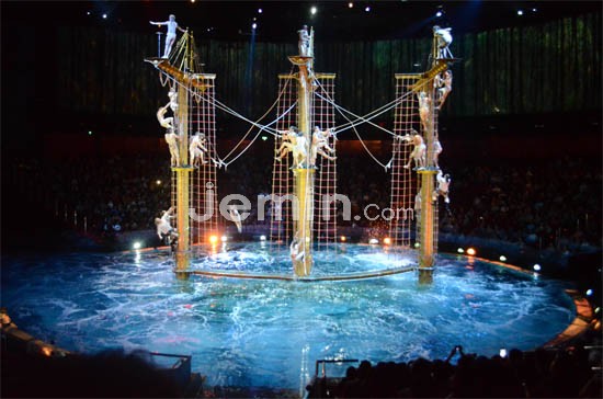 ▲ 마카오 코타이 지역에 위치한 복합리조트 시티 오브 드림스에서 '더 하우스 오브 댄싱 워터(The House of Dancing Water)' 쇼가 펼쳐지고 있다. 사진=변미루 기자