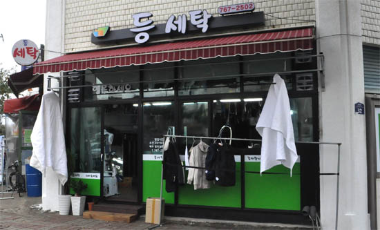 가장 먼저 세탁소 간판이 바뀌었다. 업체 특성을 살린 깔끔한 조명 간판이 '등세탁'의 위치를 알린다. 20년이란 시간만큼 녹이 슬고 낡았던 창문과 출입문도 바꿨다.