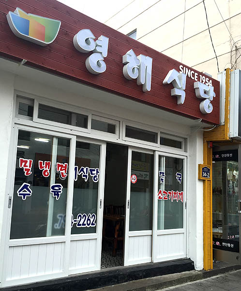 또 하나 영해 식당의 강점은 '청결한 관리'와 '인심'에 있다. 아직 식당에는 40년도 전 남편이 직접 짰다는 식탁이 있다. 지인의 소개로 제주도경제통상진흥원의 시설개선 및 컨설팅 지원 사업 신청을 했을 때 업력으로는 최고(最古)였지만 매장 관리 상태는 중상 수준이었다. 지원을 받고 간판과 낡은 화장실을 보수했다. 그 동안은 낡은 간판이 '연륜'이라고 생각했지만 전문가들의 생각은 달랐다. 간판에 '1962년부터'라고 못 박았다. 누구나 알기 쉽게 정보를 제공하는 것이 중요하다는 말은 효과를 봤다. "지나던 길에 간판을 보고 맛이 궁금해서 들어왔다는 사람들이 꽤 된다"는 말에 흥이 실린다.