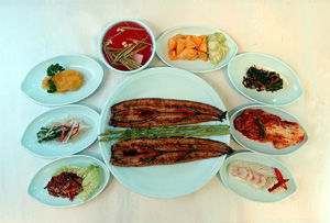 송씨는 손님 곁에서 “양파와 곁들여 먹으면 장어의 느끼한 맛을 없앨 수 있다”고 귀띔해준다. 곁들여져 나오는 갓물김치, 호박찜, 굴젓 등 갖은 반찬에는 인공감미료를 사용하지 않고 호박씨 등을 갈아 감미료대신 쓰고 있다.