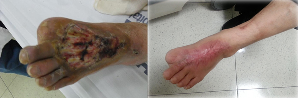 당뇨를 방치했던 L씨는 1년 전쯤부터 조금 오래 걸으면 종아리가 당기고 쉬면 괜찮아지는 현상이 밤에 쥐가 나거나 발이 시린 증세와 함께 나타났다. 그러던 어느 날 맨발에 슬리퍼를 신고 집 앞 슈퍼마켓에 가다가 보도에 발등을 긁히면서 작은 상처가 났다. 집 근처 병원에서 상처소독만 하고 집으로 돌아왔지만 상처가 낫기는 커녕 점점 악화되어 갔다.