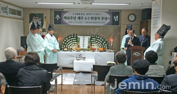 서울제주특별자치도민회(회장 김창희)는 3일 오전 11시 탐라영재관에서 '제68주년 제주 4·3 희생자 추념식'을 봉행했다.