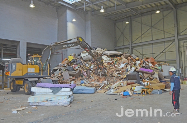 소각시설로 반입된 침대 등 대형 폐기물은 1차 분리과정을 거쳐 재활용품을 선별한 후 파쇄기로 보내지게 된다.