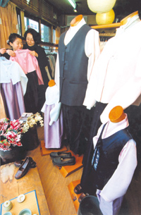 생활한복 업체인 돌실나이 김경미씨는 “올 겨울은 화려한 색상보다는 살색 계통과 양장형 디자인을 가미한 생활한복이 두드러지는 추세이다”면서 “그동안 면과 구김이 덜 가는 폴리에스테르 제품이 많았으나, 웬만한 추위에 끄떡없는 누비 소재를 활용한 패딩형 제품도 눈에 띈다”고 말했다.<글=정용복·사진=김대생 기자>