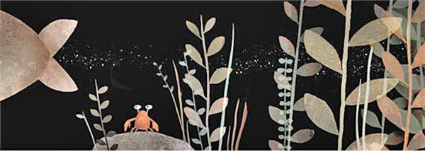 그러다 우연히 나타난 작은 물고기 한 마리가 필자의 마음을 사로잡았다. 작가 존 크라센이 그린 「이건 내 모자가 아니야」에 나오는 모자 쓴 작은 물고기 한 마리가 그랬다. 남의 모자를 훔쳐 쓰고 달아나는, 양심없는 그런 작은 물고기다. 배경은 지금의 우리나라를 연상케 하는 짙은 어둠의 바다. 물고기가 없다면 바다라고 생각할 수 없을 정도로 검은 빛의 바다다. 그 속에 작은 물고기 한 마리가 커다란 물고기의 모자를 슬쩍 훔쳐 키 크고 굵은 물풀들이 빽빽하게 우거진 곳으로 도망간다. 그 곳에 숨으면 찾아내지 못하리라는 계산에서다. 물론 누군가가 도망가는 자신을 보긴 했지만 비밀로 해주기로 약속했기에 걱정하지 않는다. 그리고 이렇게 말한다.