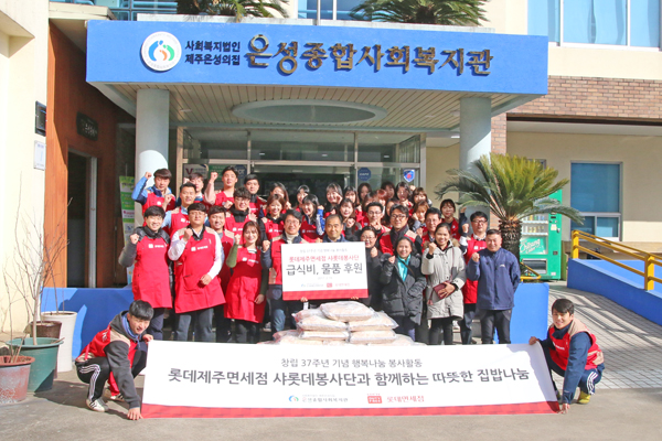창립 37주년을 기념해 마련된 이날 봉사에는 임직원 40여명이 참여해 정성 가득담은 집밥을 제주시내 저소득층 및 혼자사는 노인들에게 대접했다.