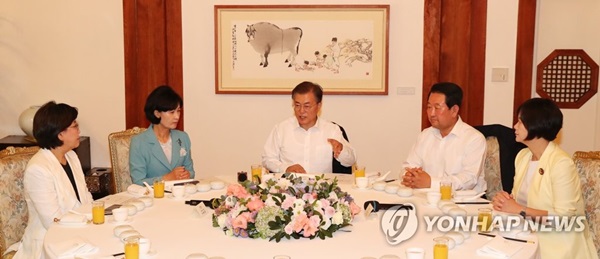 문 대통령은 이날 청와대 상춘재에서 추미애 더불어민주당 대표와 박주선 국민의당 비상대책위원장, 이혜훈 바른정당 대표, 이정미 정의당 대표 등 여야 4당 원내대표를 초청해 오찬을 함께 한 자리에서 "이번 해외순방 때 미국, 일본 정상과 만났을 때도 비핵화를 위한 대화와 비정치적 인도적 대화의 구분에 대해 여러 번 설명을 했다"면서 이같이 강조했다고 청와대가 서면 브리핑을 통해 밝혔다.