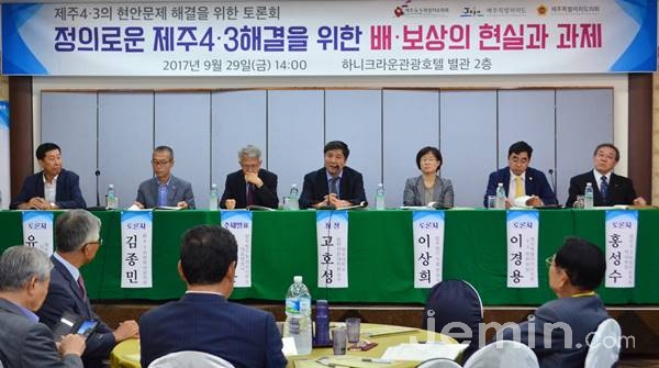 제주4·3희생자유족회 배·보상담당특별위원회는 29일 하니크라운관광호텔에서 '정의로운 제주4·3해결을 위한 배·보상의 현실과 과제'를 주제로 토론회를 개최했다.
