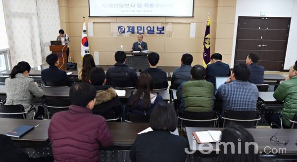 펑춘타이 주제주중국총영사관 총영사는 28일 제민일보 1층 대강당에서 열린 '제민일보사 11월 임·직원 윤리교육'에서 한·중 관계에서의 제주의 강점과 역할을 강조했다.